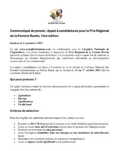 Kankan accueille la 1ère édition du Prix Régional de la Femme Rurale : un appel à candidatures est lancé…